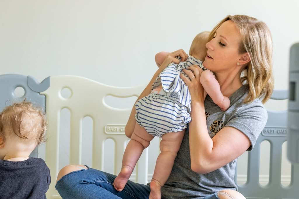 It was really nice to have places to put the babies down all around the house. We used Rock ‘n’ Plays, but since those have been recalled, I’ll suggest our baby bouncer instead. It was really important and helpful to have a place to set one baby while I fed the other, etc.